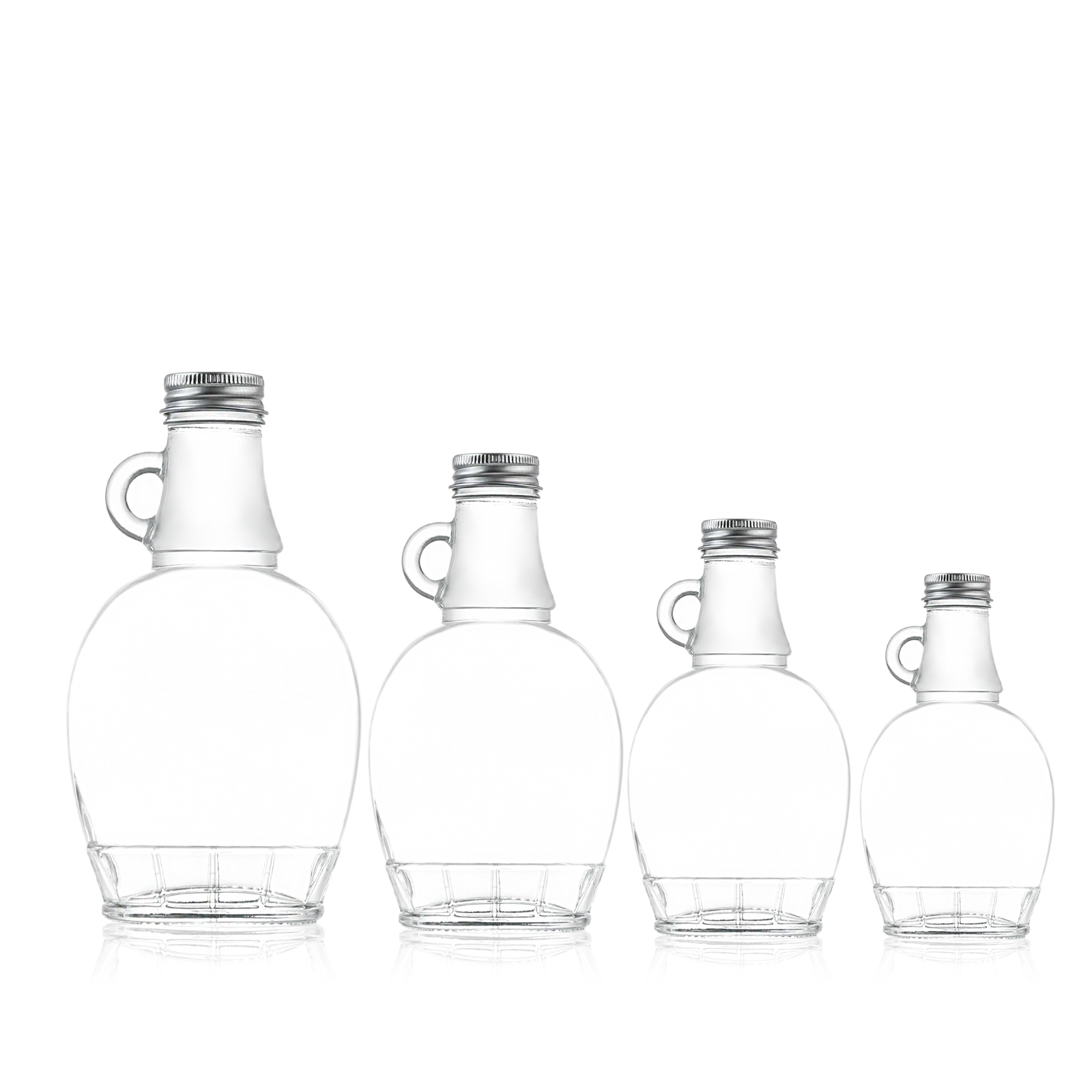 This is a new flat bottle wine with handle designed by our factory. Currently there are a range of 100ml to 500ml. If you need other sizes, we can accept customization. Our bottle designed with handle, make it easy to use. Our bottles are made of food grade high quality glass material, wear resistance and durable, high temperature and cold resistance, environmental protection. The bottom of the bottle is thickened and non-slip design for firm placement, and the mouth is round and smooth with crown lid, which is sealed well and can store all the flavors you want.