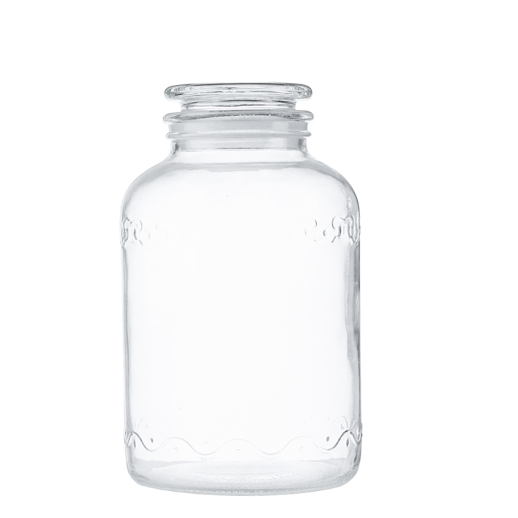 This premium large glass storage jar with a lid has an elegant embossed design. Durable and stylish, it preserves/displays food (jams, dried goods) fresh, complementing kitchen decor.