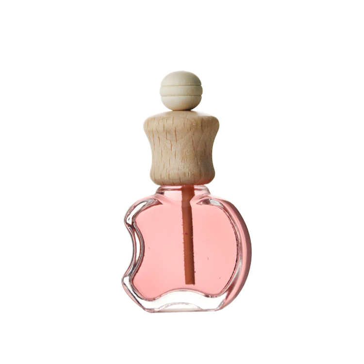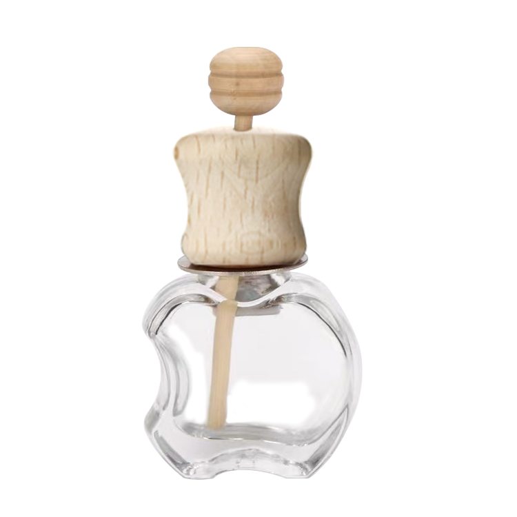 This is our wholesale empty car diffuser bottle, featuring a unique shape. Its wooden cap boasts fine grain and high hardness, while also enabling fragrance diffusion. The compact bottle is easy to carry and can be paired with a rope for hanging. Customization options include adding your logo to the bottle via silk screen printing or hot stamping, and laser engraving logos on the cap. More than just a diffuser bottle, it doubles as a piece of artwork. The clear glass allows you to see the perfume’s color clearly. You can unscrew the lid to refill perfume, making it reusable. It serves as an excellent car ornament.