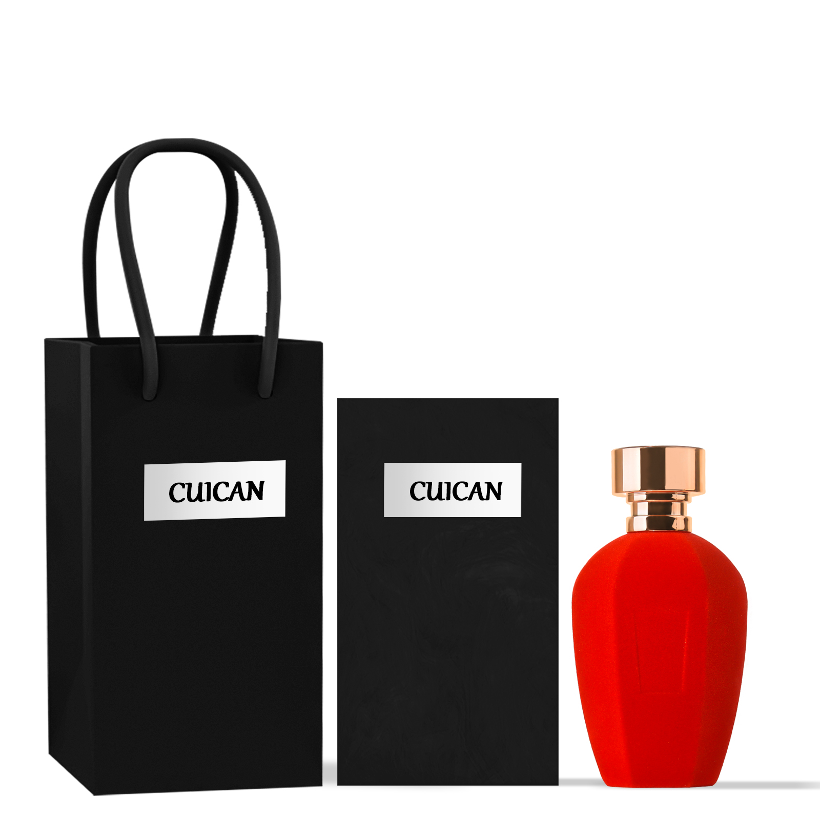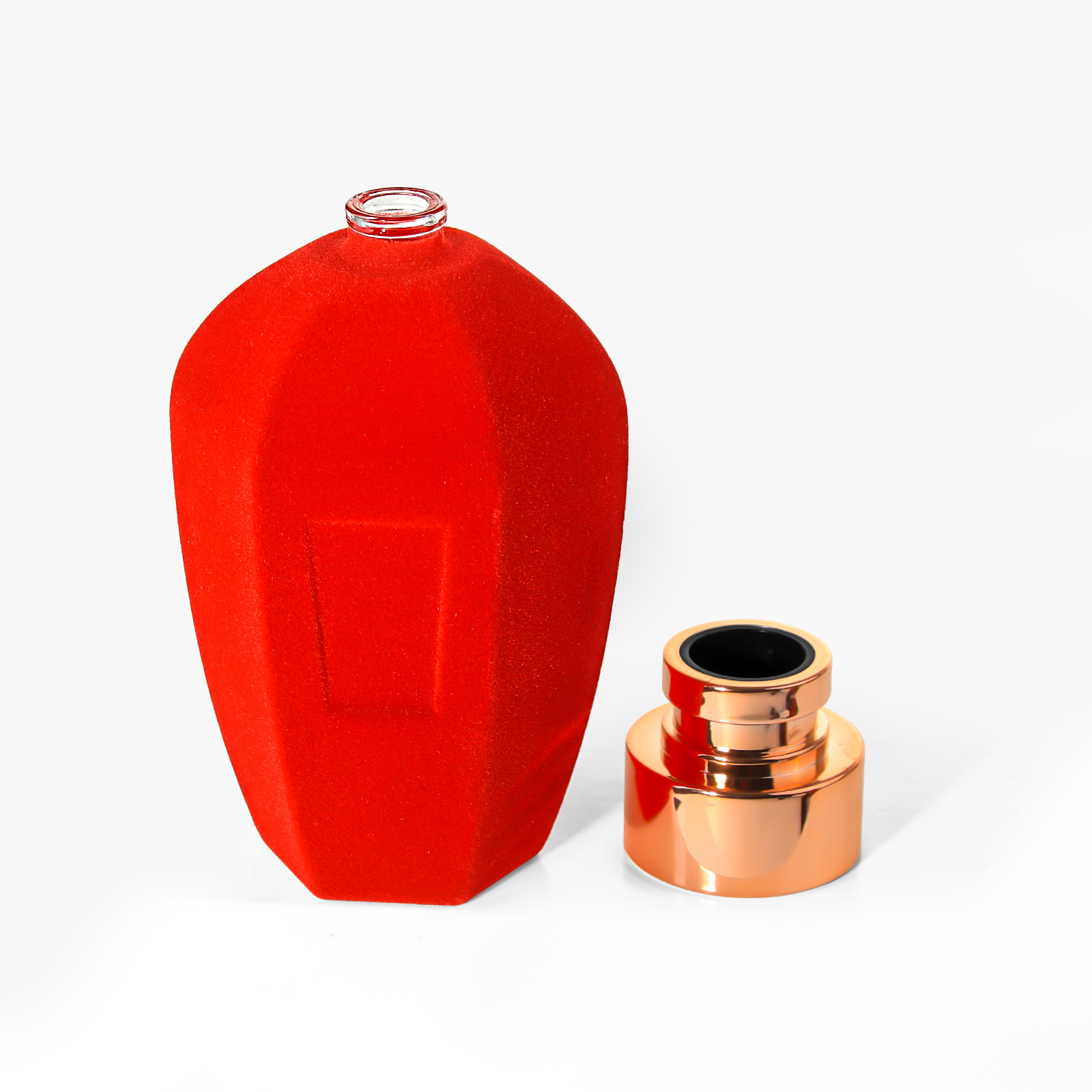 Luxurious red glass perfume bottle with elegant design and airtight, non-reactive glass construction that preserves fragrance quality and enhances aesthetic appeal.