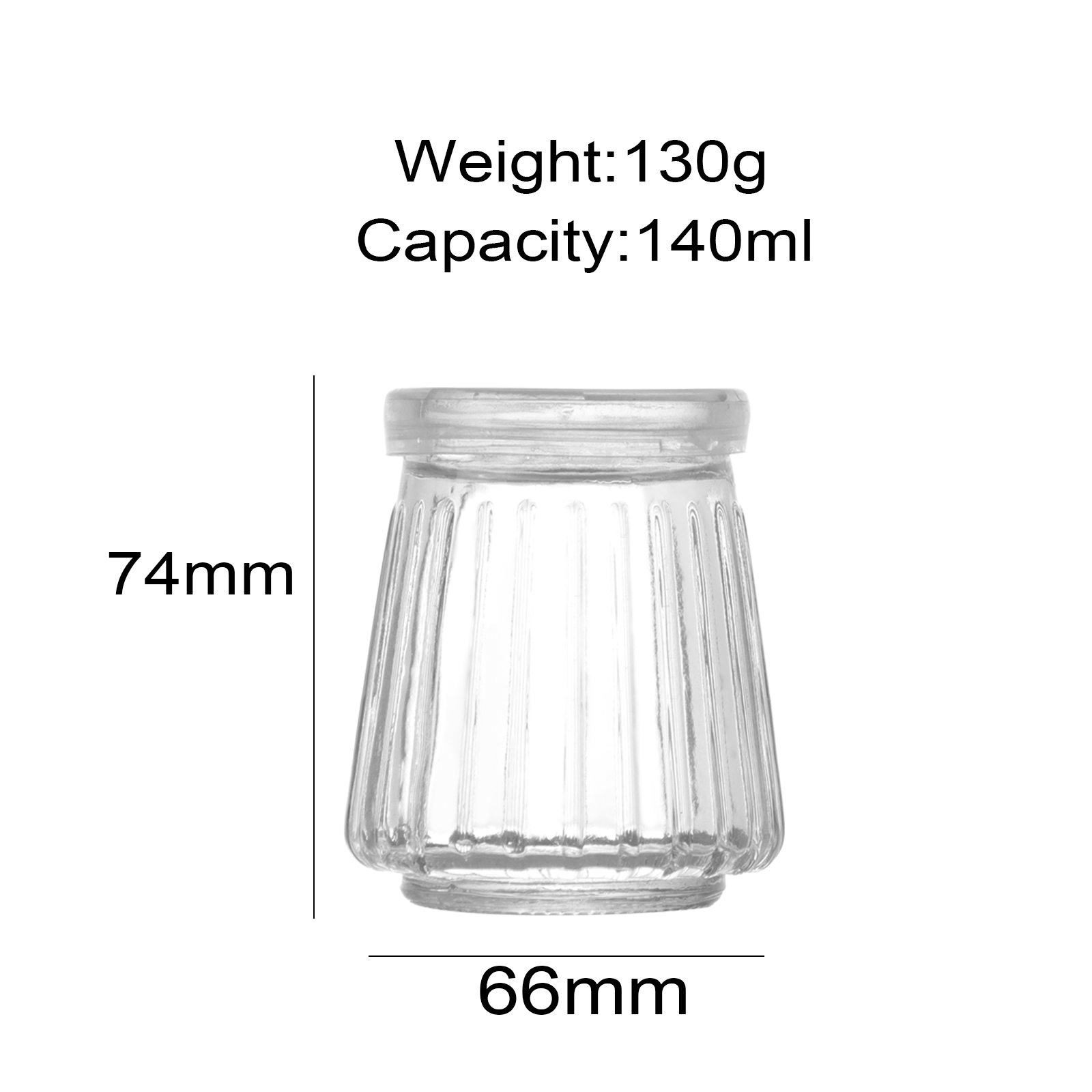 The Dessert Glass Container features a timeless design with vertical ridges, adding elegance to any space. Its clear glass beautifully displays contents, making it perfect for showcasing preserves, jams, or as a decorative accent.