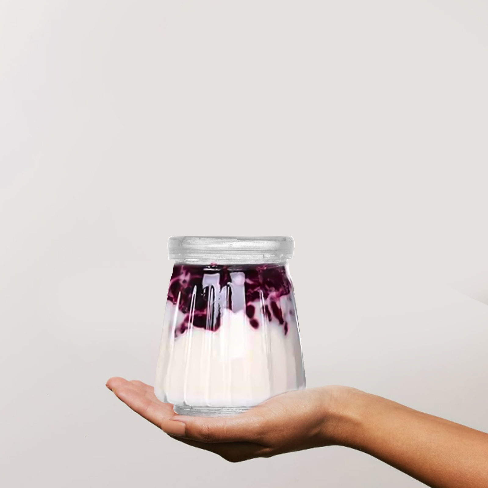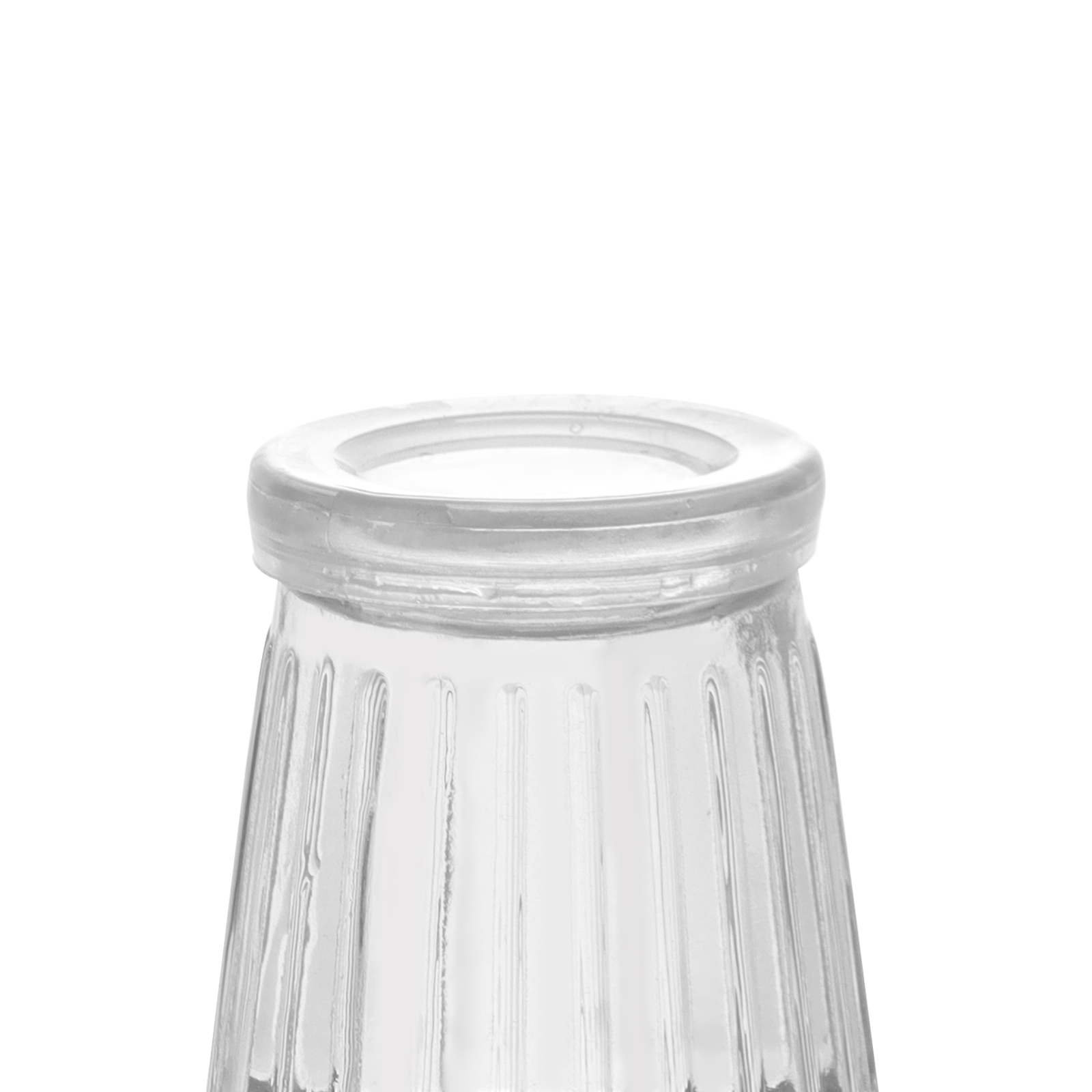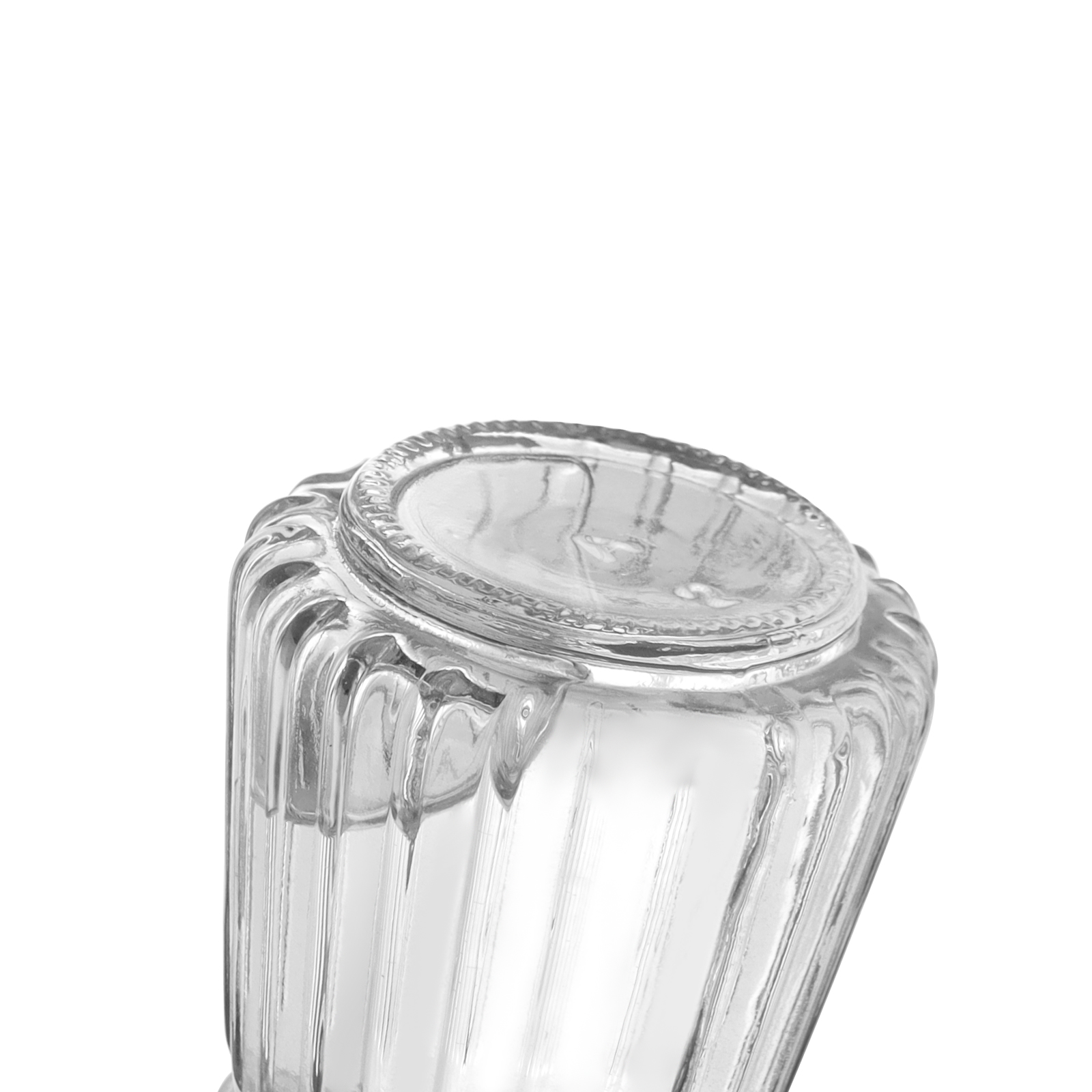The Dessert Glass Container features a timeless design with vertical ridges, adding elegance to any space. Its clear glass beautifully displays contents, making it perfect for showcasing preserves, jams, or as a decorative accent.