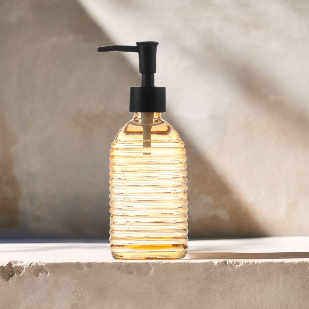 Made of premium glass for long-lasting durability and wear resistance. The transparent glass showcases the soap’s color, adding vibrancy to your space while maintaining a sleek, clean appearance.