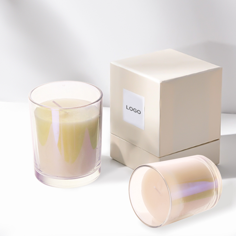 Electroplated Glass Candle Jars Wholesale with Bamboo Lids | 6oz, 8oz, 12oz. Features metallic sheen, comes with metal + bamboo lids, ideal for adding elegance to weddings and special occasions.