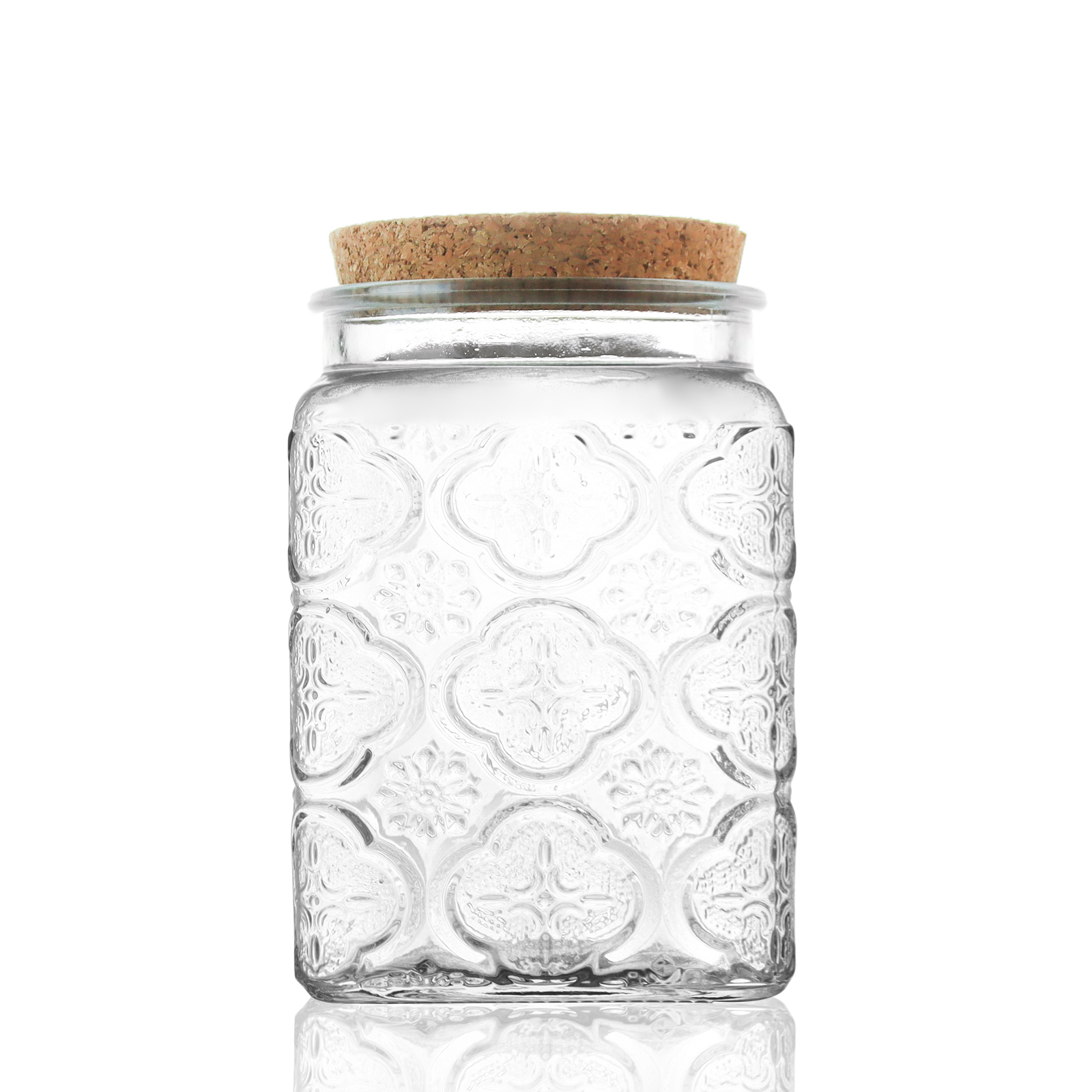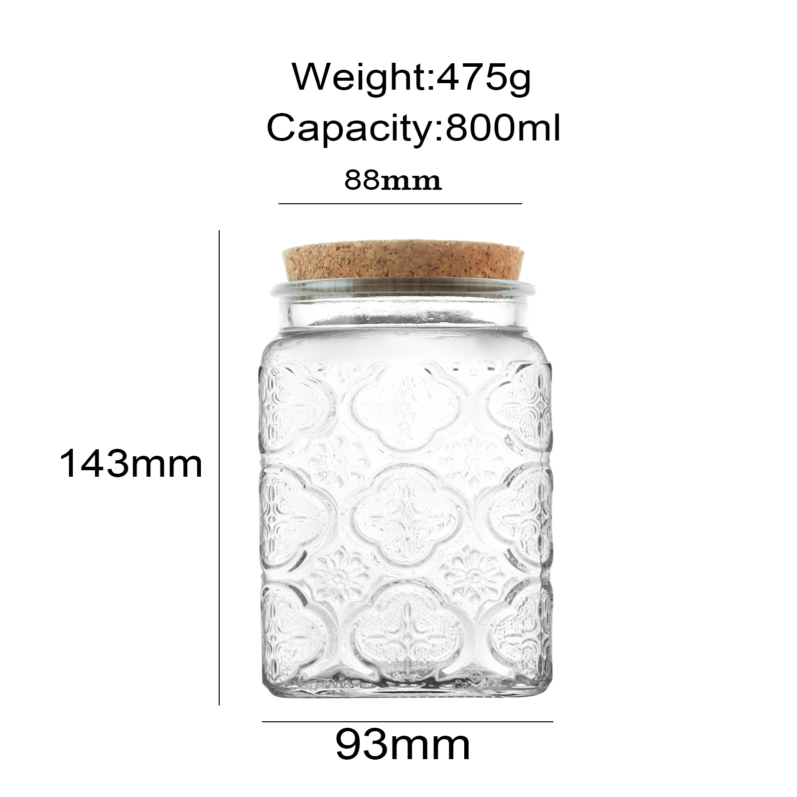 This Square Glass Jar With Bamboo Lid, adorned with beautiful embossed patterns, offers both style and functionality. Crafted from high-quality glass, it ensures durability and is safe for storing a variety of items. The included cork lid provides an airtight seal, ideal for preserving freshness. Perfect for home organization, crafts, or even as a decorative piece, this jar combines practicality with a touch of sophistication.