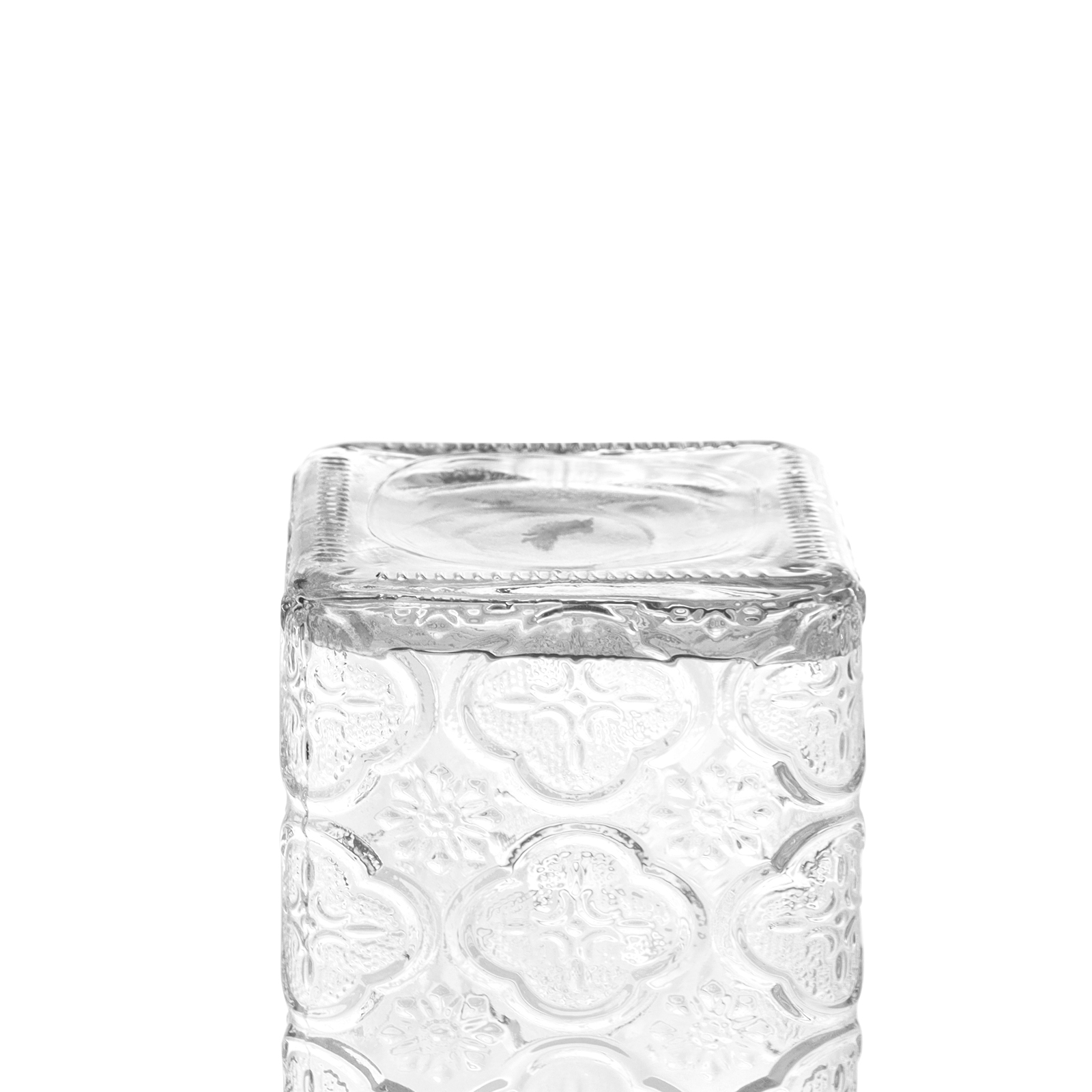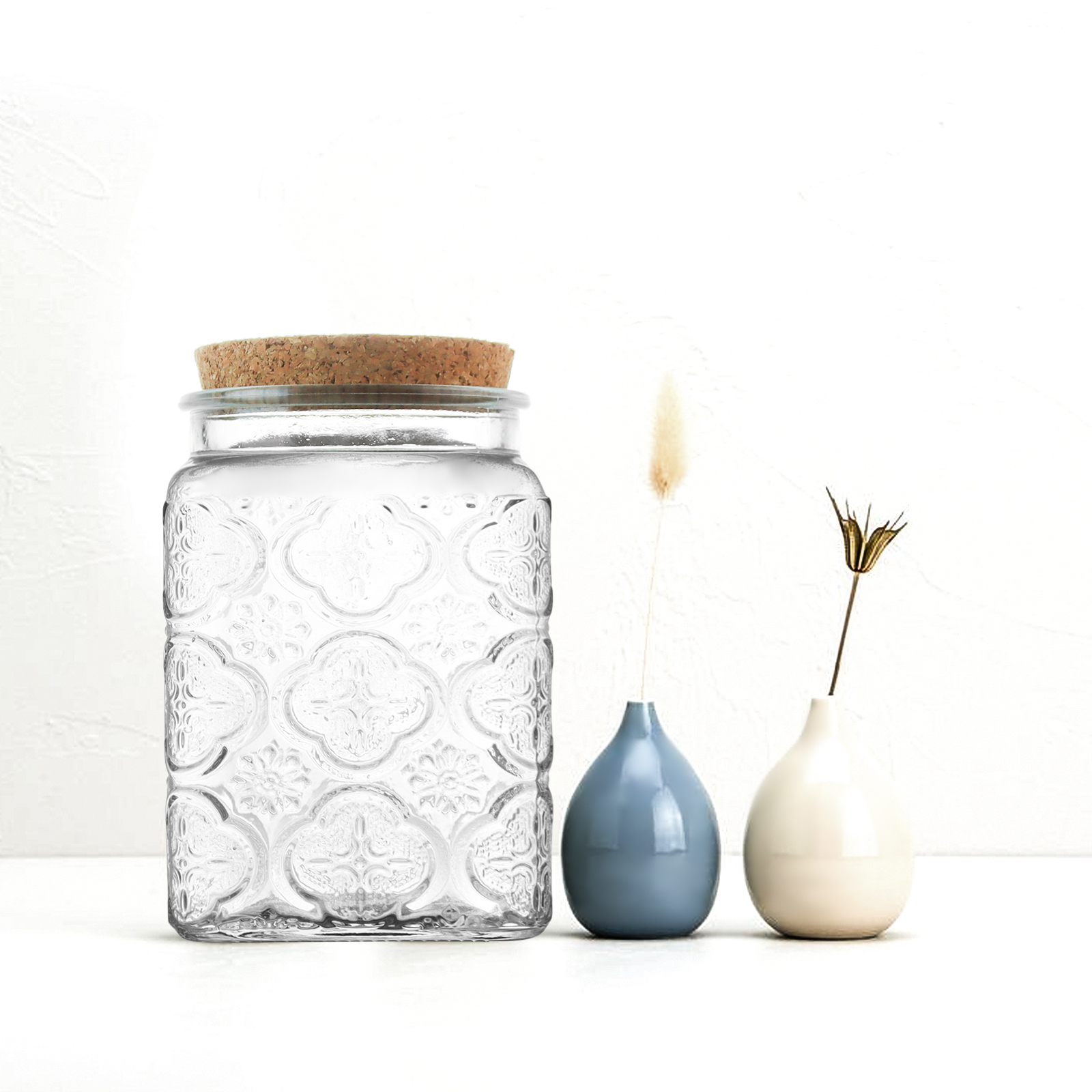 This Square Glass Jar With Bamboo Lid, adorned with beautiful embossed patterns, offers both style and functionality. Crafted from high-quality glass, it ensures durability and is safe for storing a variety of items. The included cork lid provides an airtight seal, ideal for preserving freshness. Perfect for home organization, crafts, or even as a decorative piece, this jar combines practicality with a touch of sophistication.