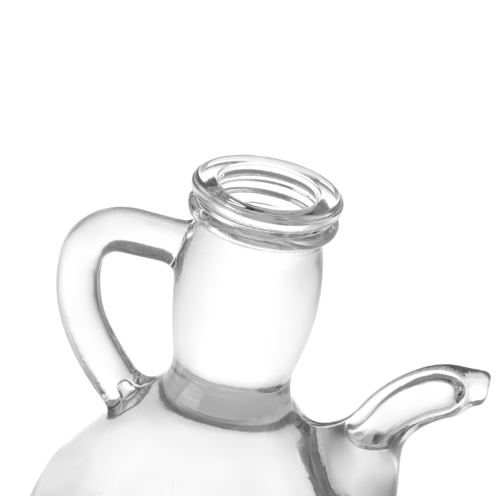 Non-reactive glass keeps oils tasting fresh and maintains their quality, the transparent body lets you easily see how much oil is left, and the ergonomic pour spout ensures no messy spills. It’s suitable for cooking oils, vinegars, sauces, and other liquids too.