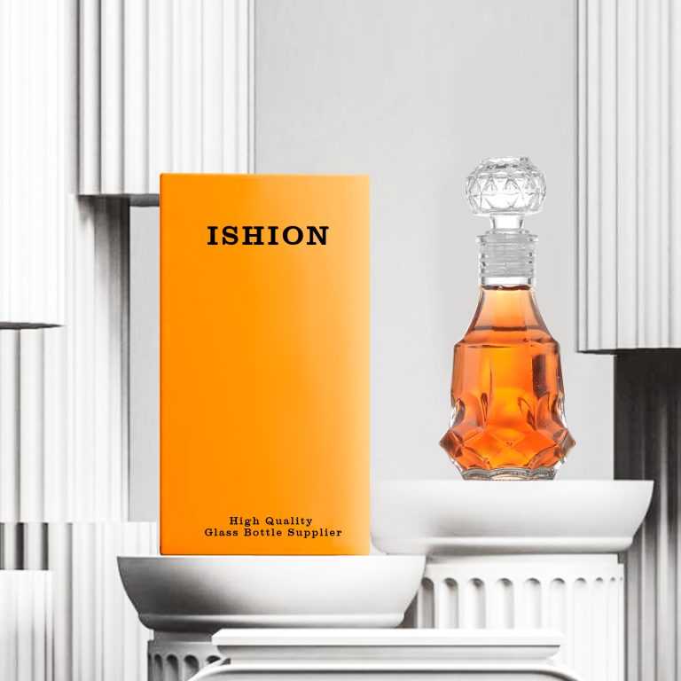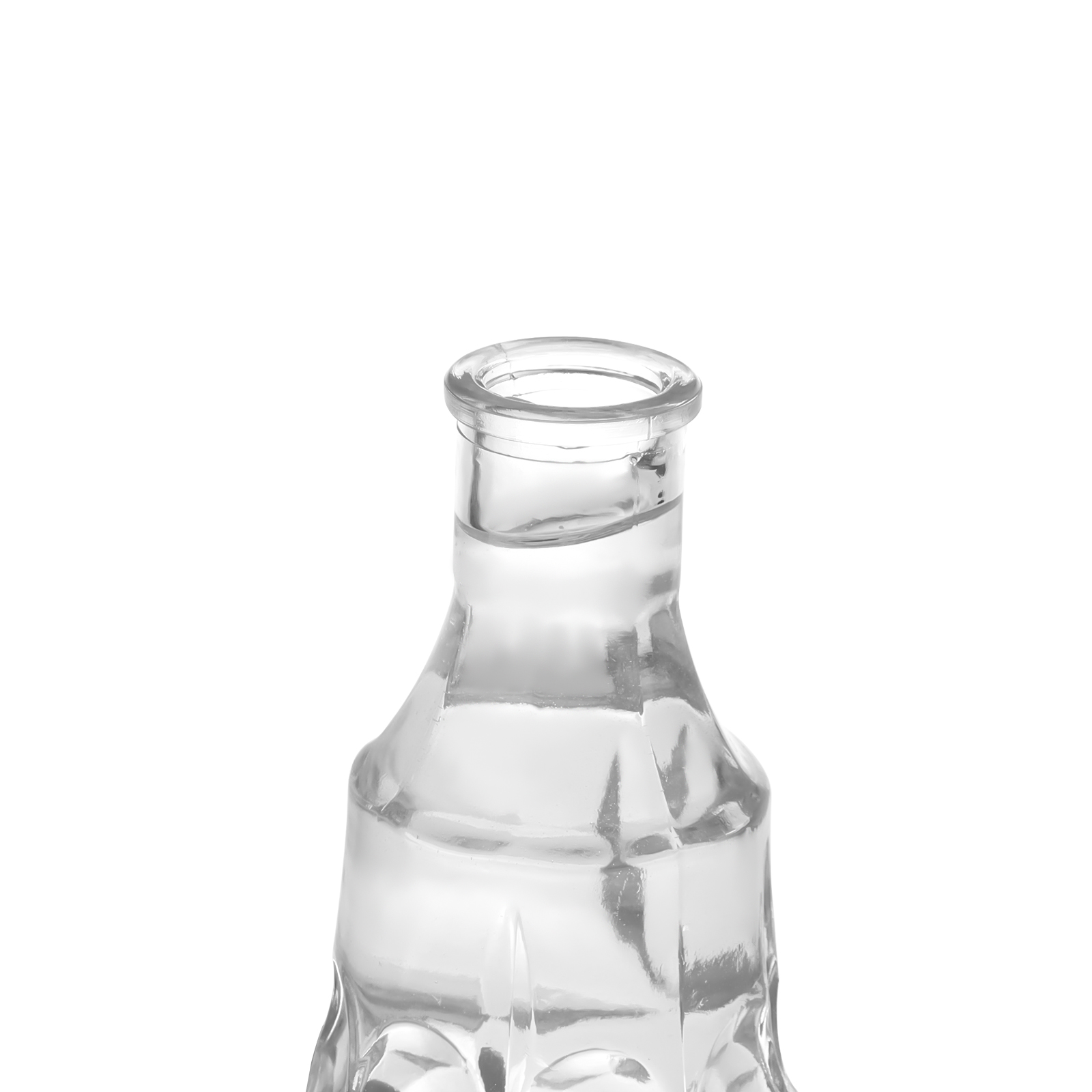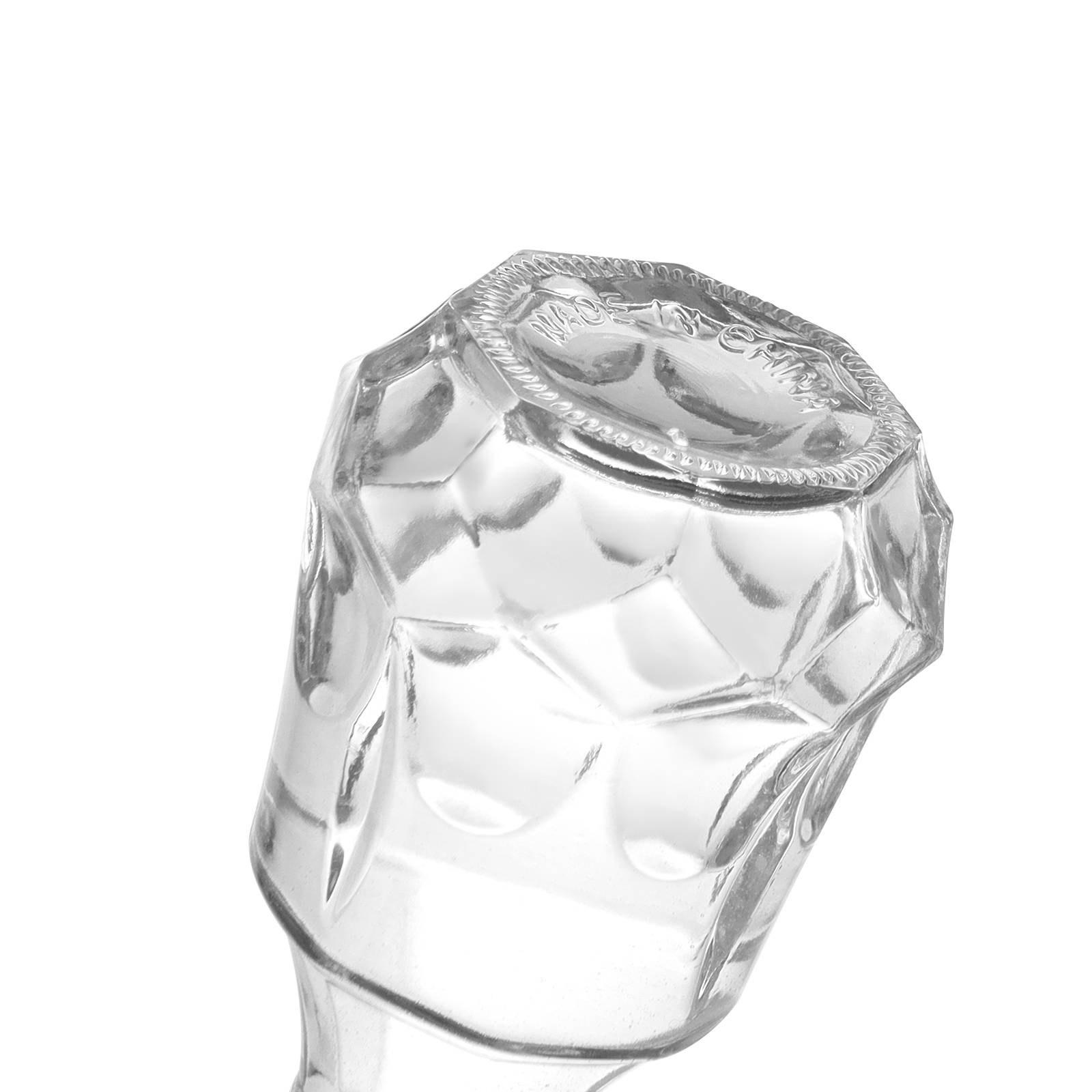 Boasting a faceted structure, this elegant small glass decanter with a stopper offers a lavish way to present premium spirits. Made of high-grade, durable glass, it maintains clarity and stands the test of time. The secure screw cap locks in freshness, while the crystal-clear body perfectly highlights the contents inside. Whether for personal use or as a gift, this decanter elevates any spirits collection with its elegant appearance and reliable functionality.