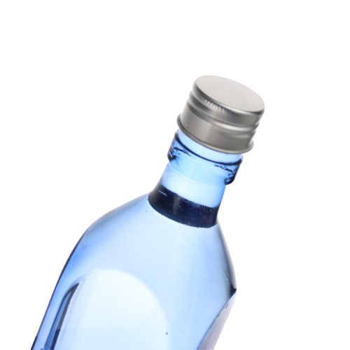 The tall and slender blue glass wine bottle looks sophisticated, attractive for premium beverages, and is practical for handling and storage.