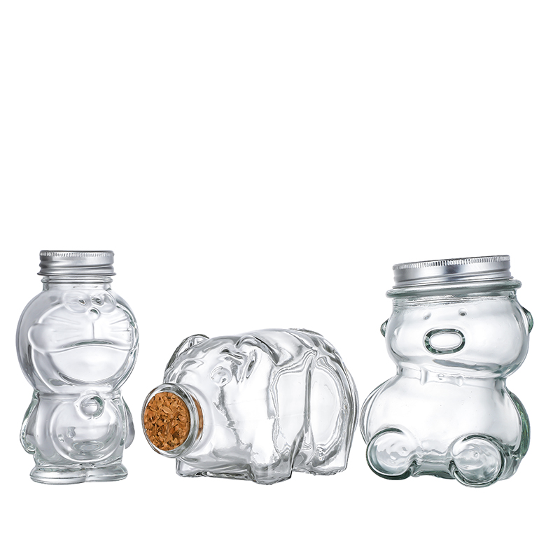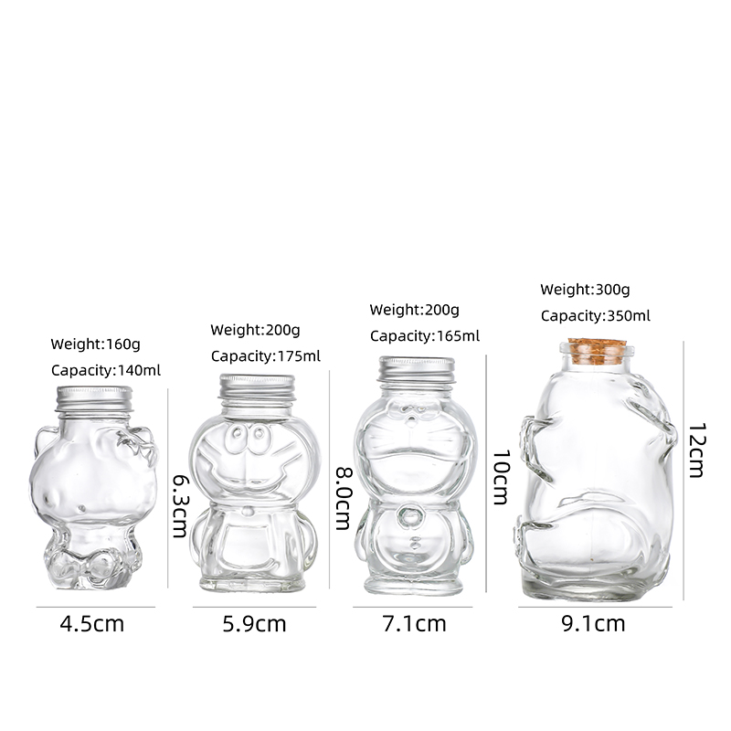 140ml/175ml/165ml/350ml Animal Shaped Jars, high-transparency glass, safe and cute. Airtight seal preserves freshness, multiple capacities, ideal for snacks and samples storage.